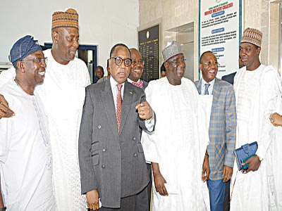Managing Director, Lagos Metropolitan Transport Authority, Dr . Dayo Mobereola (left); Director, Rail Transport Service, Federal Ministry Of Transport, Mohammed Babakobi; Minister of Industry, Trade and Investment, Dr. Olusegun Aganga; Commissioner for Transport, Lagos State, Kayode Opeifa; Minister of Transport, Senator Idris Umar; Managing Director, the Infrastructure Bank, Adekunle Oyinloye; Permanent Secretary, Federal Ministry of Transport, Mohammed Bashar; and others, after signing of agreement on Ceding of Lagos Railway Red Line from Federal Government to Lagos State Government, in Abuja.