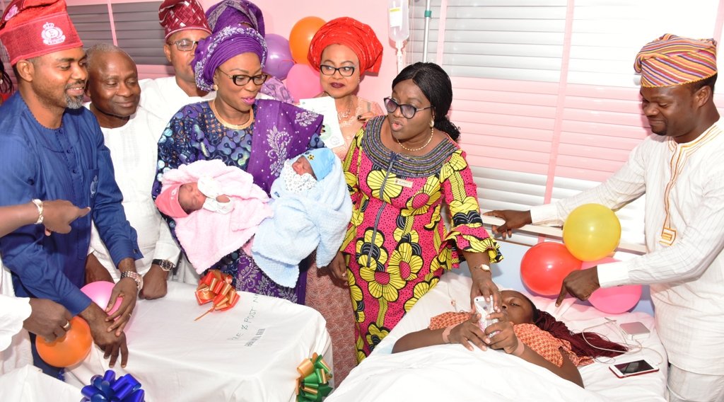 Lagos State First Lady Mrs Abimbola Ambode visits first babies of the year in Lagos