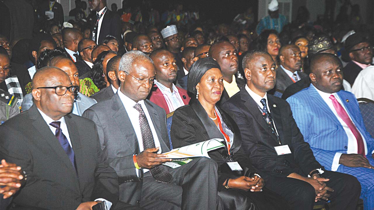 Chief Justice of Nigerian, Walter Nkanu Onnoghen (left); Minister of Power, Works and Housing,  Babatunde Fashola; Justice Patricia Mahmoud; President Nigerian Bar Association (NBA),  Abubakar Balarabe Mahmoud and Lagos State Governor Akinwunmi Ambode at the NBA 2017 Annual General Conference in Lagos... yesterday. PHOTO: AYODELE ADENIRAN