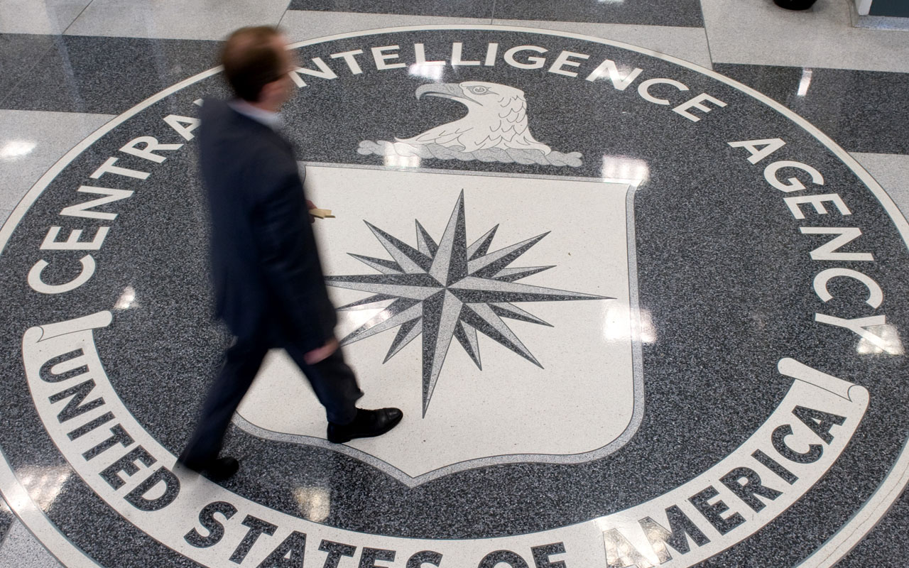 a man walking over the seal of the Central Intelligence Agency (CIA) in the lobby of CIA Headquarters in Langley, Virginia. The CIA can turn your TV into a listening device, bypass popular encryption apps, and possibly control your car, according to a trove of alleged documents from the US spy agency released on March 7, 2017 by WikiLeaks. The group posted nearly 9,000 documents it said were leaked from the Central Intelligence Agency, in what it described as the largest-ever publication of secret intelligence materials.