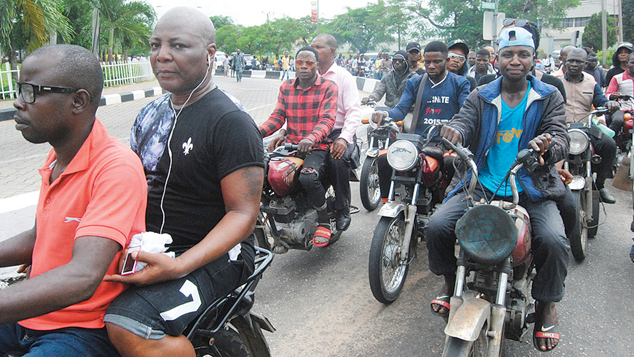 Charly Boy (on bike) leading the march yesterday