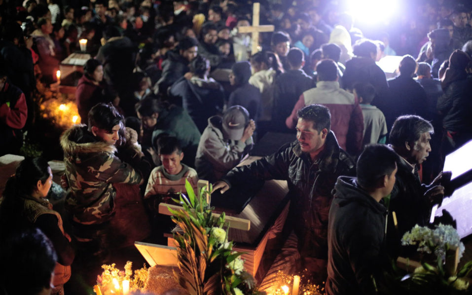 In all, 14 people died in San Isidro, in the central state of Puebla, on Monday night. Eleven of them were children.