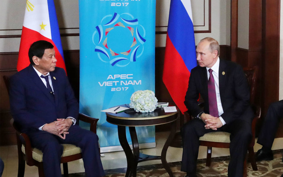 “I want to pass on words of thanks from the Philippine people for the timely aid that Russia provided by giving us trucks and weapons,” he said as the two met on the sidelines of the APEC summit in Danang, Vietnam.