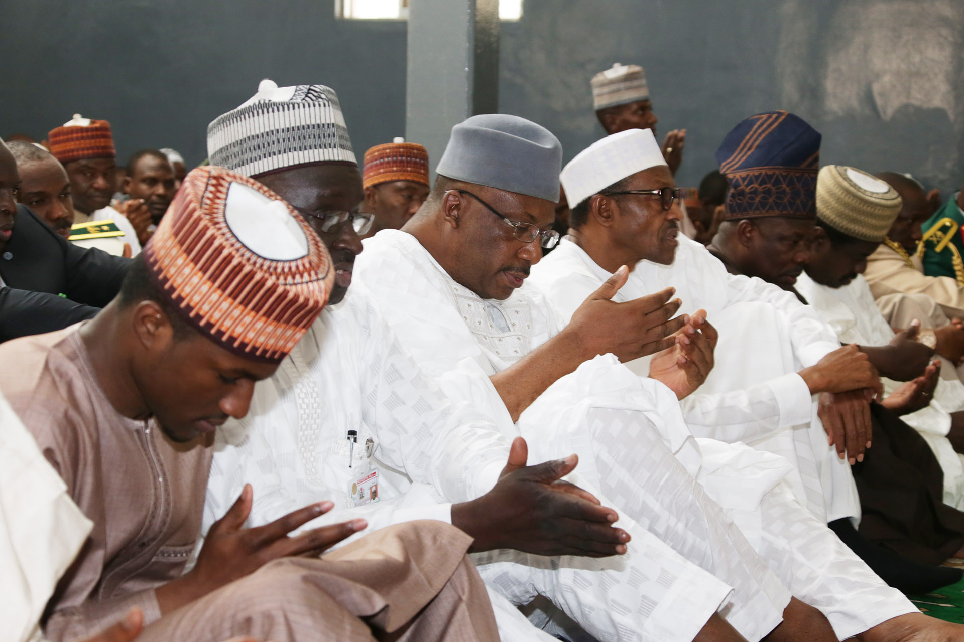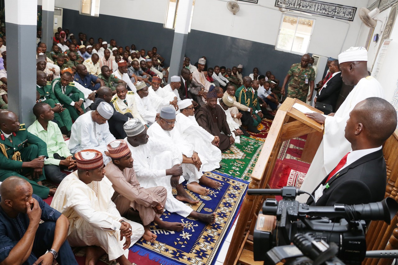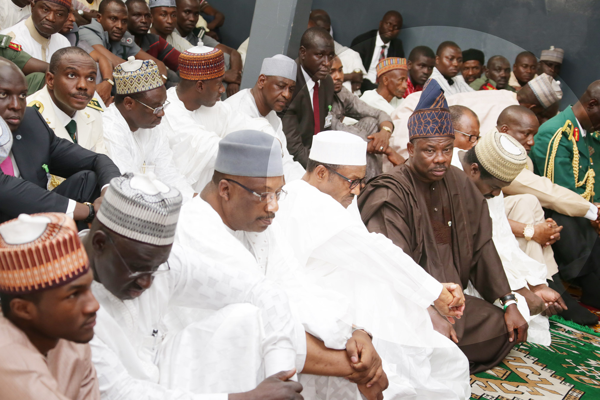 Gov Ibikunle Amosun of Ogun State, Pres. Muhammadu Buhari, former Chief of Army Staff, Lt General Abdulrahaman Dambazu, President’s personal aide, Sarki Abba, Yusuf Buhari and others during a special Juma’at Prayer to mark the Army Day Celebration held at the Mogadishu Barrack Abuja on Friday, July 3, 2015. PHOTO: Philip OjisuaGov Ibikunle Amosun of Ogun State, Pres. Muhammadu Buhari, former Chief of Army Staff, Lt General Abdulrahaman Dambazu, President’s personal aide, Sarki Abba, Yusuf Buhari and others during a special Juma’at Prayer to mark the Army Day Celebration held at the Mogadishu Barrack Abuja on Friday, July 3, 2015. PHOTO: Philip Ojisua