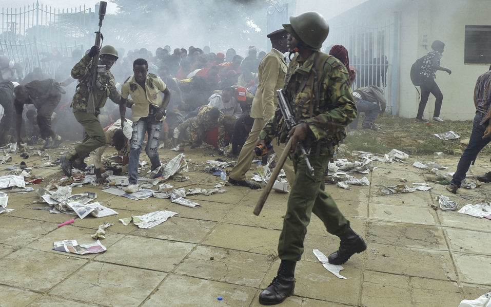 Meanwhile at the Kasarani stadium chaos erupted as a crowd attempted to force its way into the venue, prompting police to fire teargas at Kenyatta supporters who tried to fight their way in.