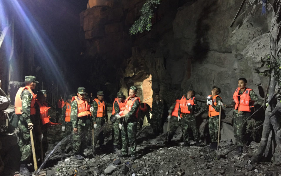 Provincial fire authorities said at least 1,250 soldiers had been deployed to Jiuzhaigou, along with hundreds of vehicles, 30 sniffer dogs and 55 devices used to detect life underneath rubble.