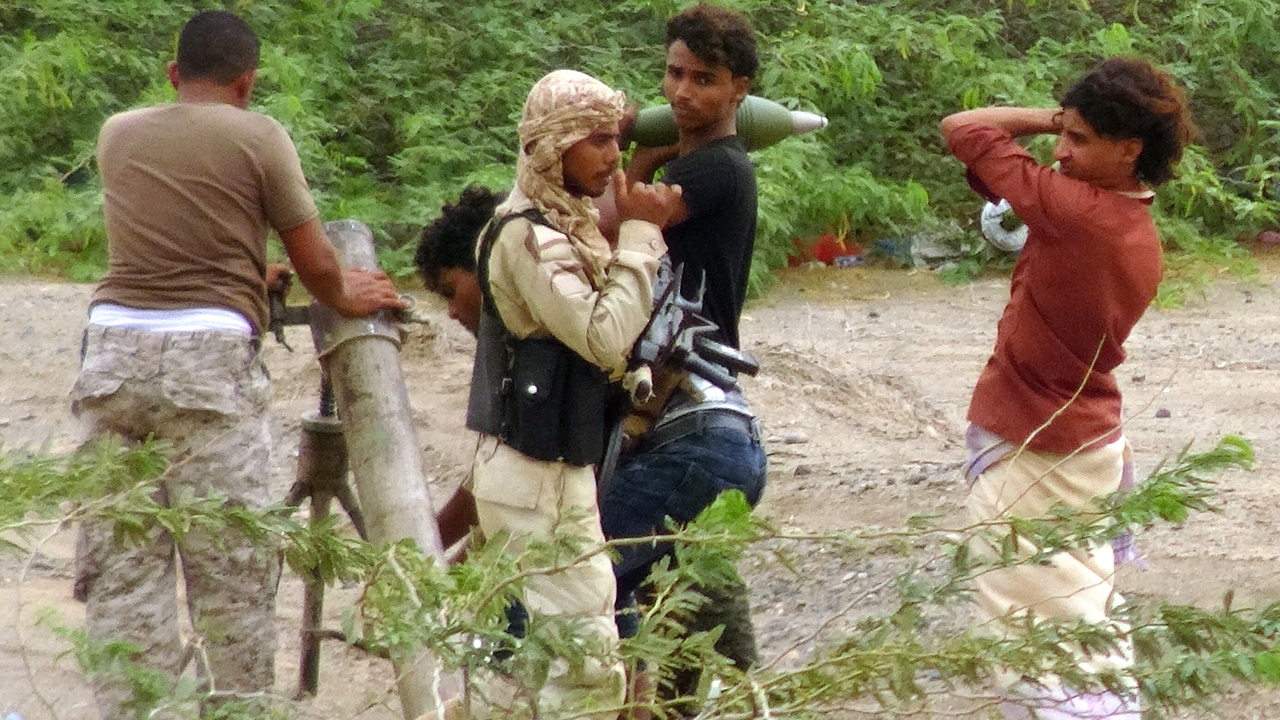 Yemeni pro-government forces prepare to fire a mortar round in the area of al-Fazah in Yemen’s Hodeida province on June 15, 2018.