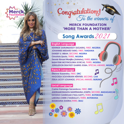 Merck Foundation, the philanthropic arm of Merck KGaA Germany announced the Winners of Merck Foundation Song Awards “More Than a Mother” 2021 in partnership with African First Ladies who are also the Ambassadors of Merck Foundation More Than a Mother. “The theme of the award was to create a song with the aim to break the Infertility Stigma, Stop GBV, and Empowering Girls and Women through Education at all levels” emphasized by Senator, Dr. Rasha Kelej, CEO of Merck Foundation, President of “More than a Mother”.