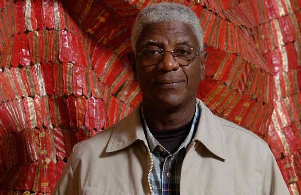 Born in Anyako, Ghana, in 1944, El Anatsui is best-known for his cascading metallic sculptures constructed of thousands of recycled bottle tops articulated with copper wire.