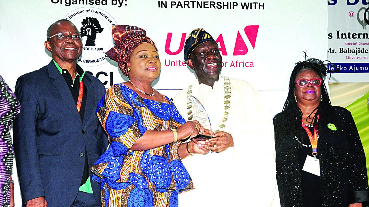Chairman, Trade Promotion Board, Lagos Chambers of Commerce and Industry, LCCI, Gabriel Idahosa (left); Representative of the Lagos State Governor/Commissioner for Commerce, Industry and Cooporatives, Lagos State, Mrs Lola Akande; President, Lagos Chamber of Commerce and Industry (LCCI), Paul Ruwase and Deputy President, LCCI, Mrs Toki Mabogunjeu dring the Closing Ceremony of the 2019 Lagos International Trade Fair in Lagos…yesterday. PHOTO: FEMI ADEBESIN-KUTI
