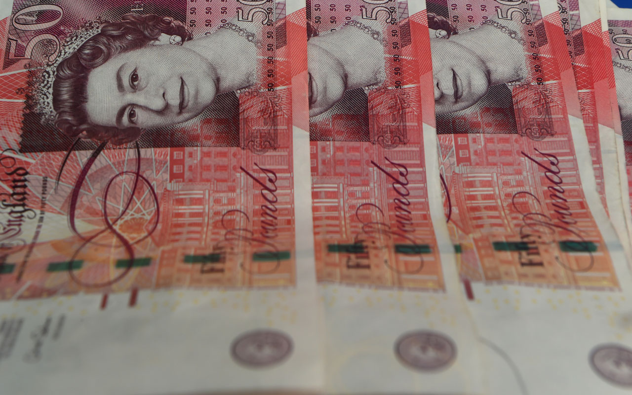 British pound notes are displayed at a money changer in Kuala Lumpur on January 16, 2017.