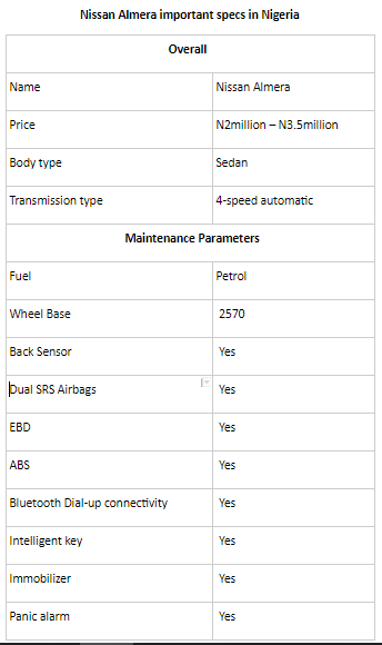 The Nissan Almera is a sedan coming equipped with an ultra-modern exterior design making it different from other models in its class. The Almera has officially jumped into the Nigerian market in April 2015.