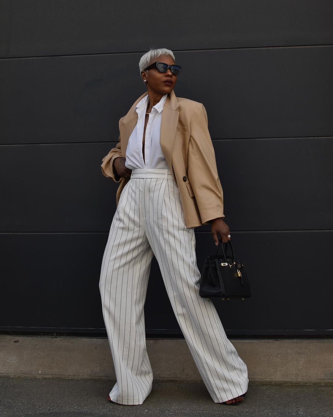 You can elevate your look by mixing various shades of beige – fawn trousers paired with a taupe trench and accessories look chic.