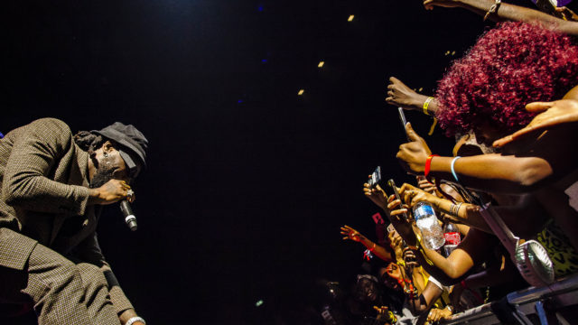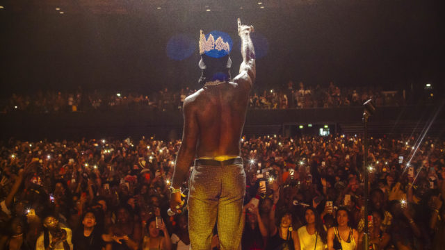 A fan handed him a crown made of cowries which he wore to perform the encore of YE