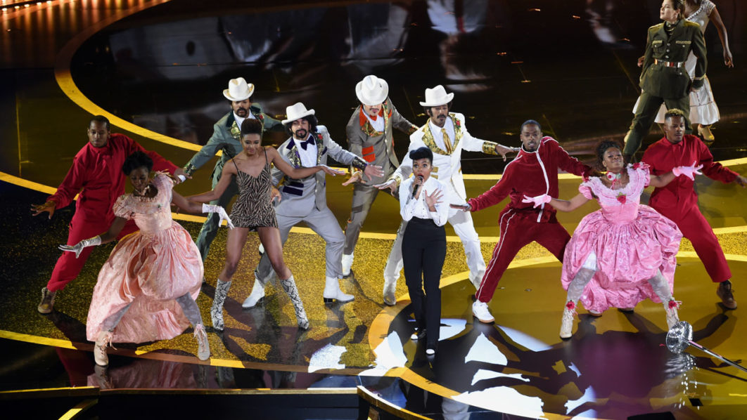 Monae kicked off the ceremony with a song-and-dance production number based on her 2010 song “Come Alive,” lyrically rewritten to reference the Oscars and some of the year’s top films.