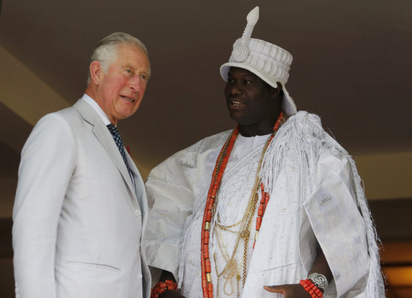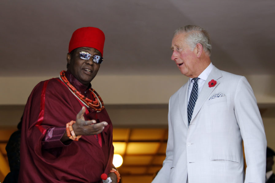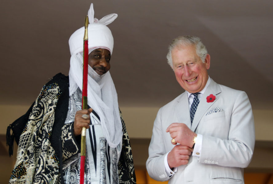 Britain’s Prince Charles (C) attends a meeting with traditional leaders at the British High Commission residence in Abuja on November 6, 2018. (Photo by AFOLABI SOTUNDE / POOL / AFP)Britain’s Prince Charles (R) stands with the Oba of Benin, Eheneden Erediauwa during a meeting with traditional leaders at the British High Commission residence in Abuja on November 6, 2018. (Photo by AFOLABI SOTUNDE / POOL / AFP)Britain’s Prince Charles (L) stands with the Ooni of Ife, Adeyeye Ogunwusi, during his meeting with traditional leaders at the British High Commission residence in Abuja on November 6, 2018. (Photo by AFOLABI SOTUNDE / POOL / AFP)Britain’s Prince Charles (C) attends a meeting with traditional leaders at the British High Commission residence in Abuja on November 6, 2018. (Photo by AFOLABI SOTUNDE / POOL / AFP)Britain’s Prince Charles (R) shares a light moment with the Emir of Kano Lamido Sanusi as they look at a book during his meeting with traditional leaders at the British High Commission residence in Abuja on November 6, 2018. (Photo by AFOLABI SOTUNDE / POOL / AFP)
