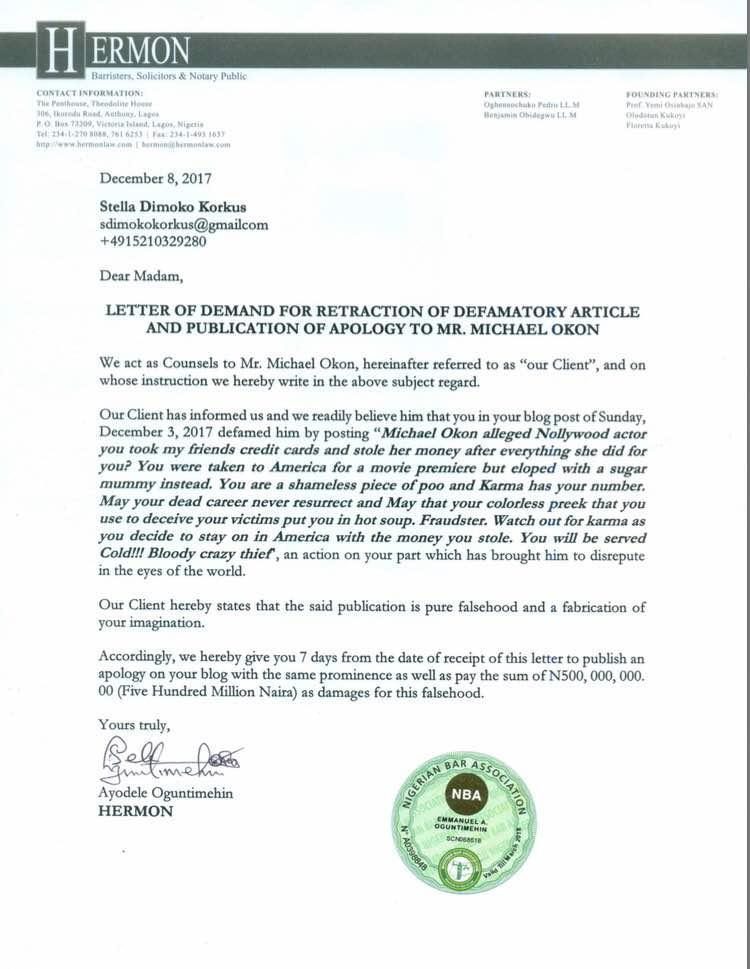 Nigerian actor, Michael Okon didn’t see this coming. Okon was accused by popular blogger, Stella Dimoko Korkus (SDK) five days ago of stealing her friend’s credit cards and money in America.