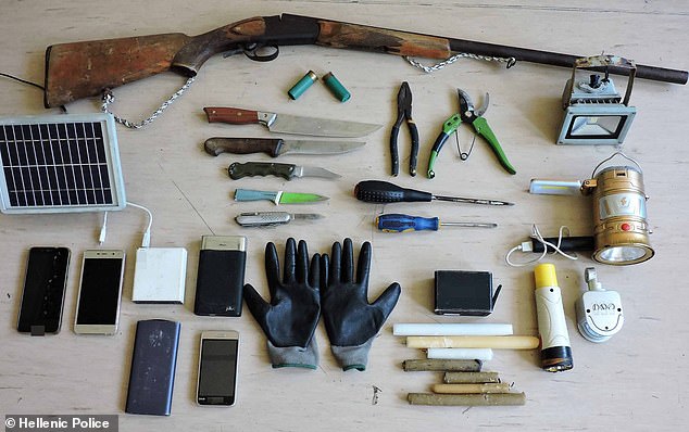 The items found close to where 47-year-old Dimitris Aspiotis was arrested on Friday, included a loaded shotgun, knives, pliers, and two screwdrivers according to The Daily Mail.