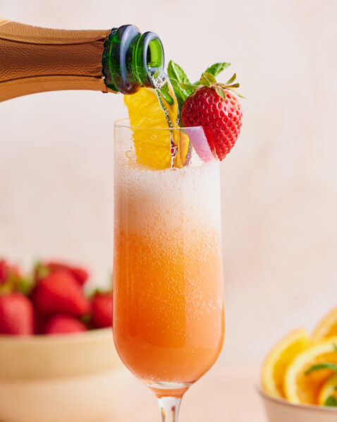 Chill your sparkling wine and orange juice in the fridge beforehand to ensure they’re nice and cold. A chilled glass is also a good idea to keep your mimosa refreshing from the first sip to the last.
