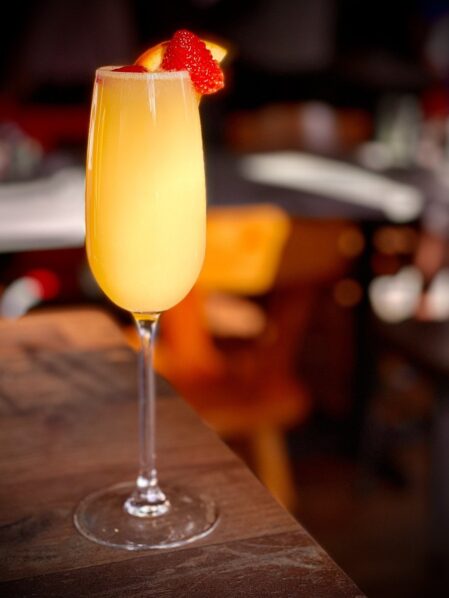 A mimosa is a simple yet sophisticated cocktail made from equal parts sparkling wine and freshly squeezed orange juice. The name “mimosa” is said to be inspired by the vibrant yellow colour of the flower of the mimosa plant.