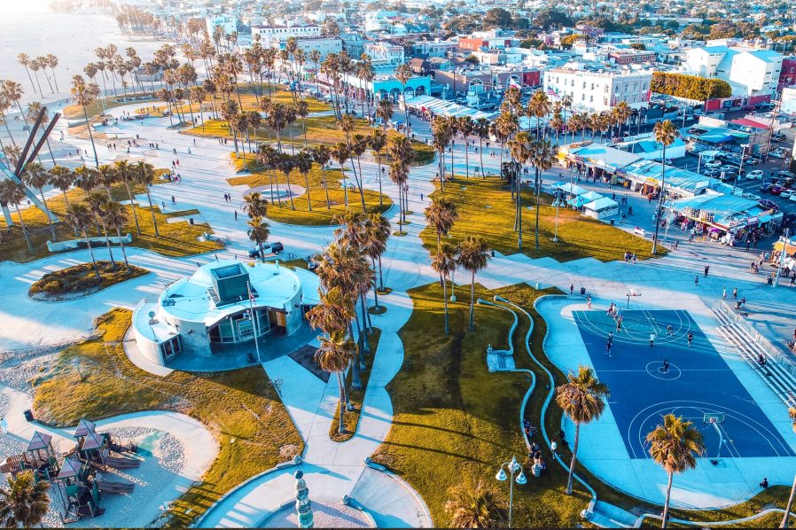 Venice, California: Venice is known for its canals, beaches and bohemian atmosphere, with a culture heavily influenced by the arts, music and counterculture. The famous Venice Boardwalk is a must-see attraction, along with Venice Beach and Muscle Beach. The Californian cuisine is known for its fusion of different cultures and its use of fresh and healthy ingredients.