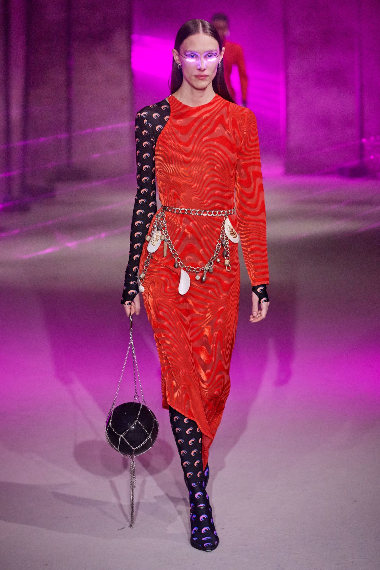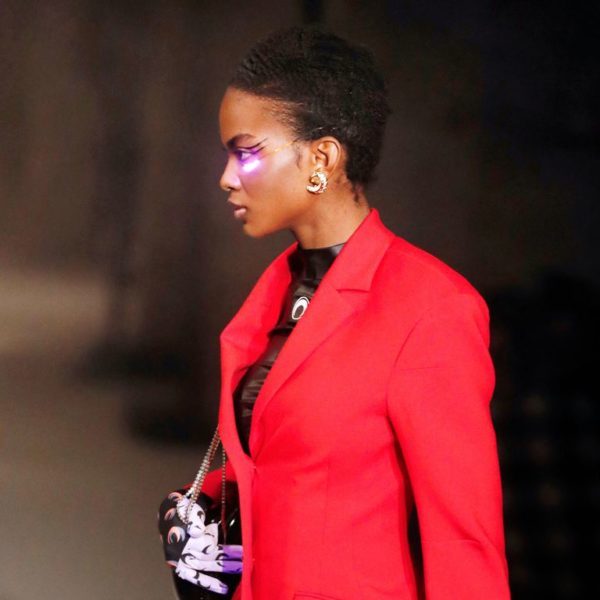 The ultimate “highlight” came in ultraviolet and laser green. They served a dual purpose, brightening both faces and the catwalk space; giving a 21st-century form to styling.
