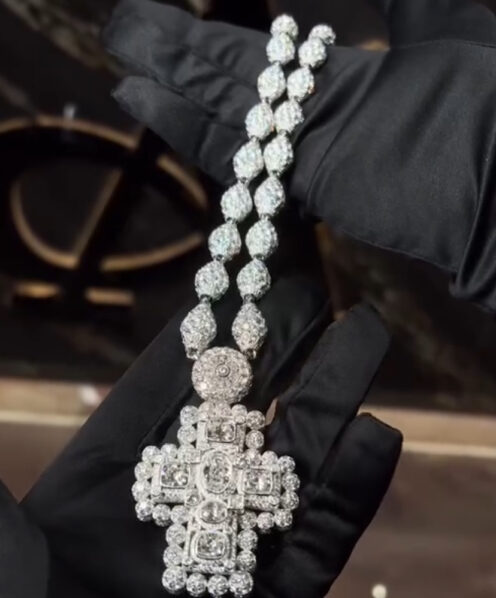 The makers of the necklace, A Jewellers, posted the details of the jewelry with the caption: “Creating an art-deco inspired cross chain for @wizkidayo was an incredible experience! Utilizing a range of diamond sizes, including large GIA certified diamonds for the centrepiece. Totalling 130ct, and hand-selecting each stone for the finest quality truly speaks to the craftsmanship and attention to detail involved.”