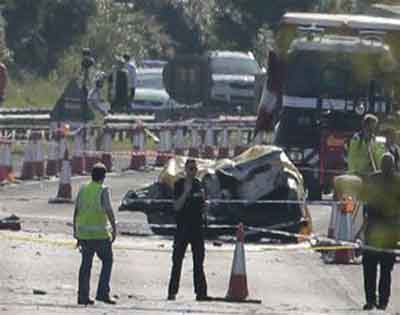 Police and accident investigators are still at the scene of the crash sifting through charred wreckage.