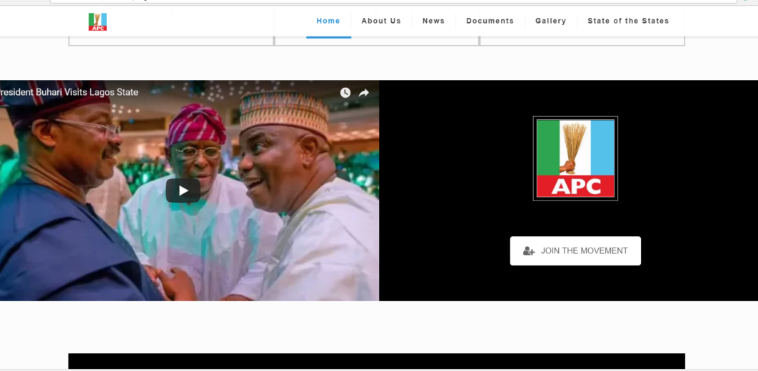 Twelve days after dumping the ruling All Progressives Congress (APC) for the Peoples Democratic Party (PDP), APC still has a video with the image of the Sokoto State Governor Aminu Tambuwal’s as its thumbnail widely displayed on its official website.