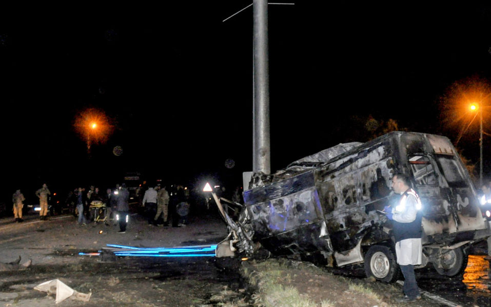 At least 17 people have been killed and another 36 wounded after a bus carrying illegal immigrants hit a lighting pole in eastern Turkey and burst into flames, local media reported on Friday.