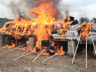 The NDLEA Lagos State Command, Murtala Mohammed International Airport (MMIA) Command, Seme Border Special Area Command and the National Headquarters seized the destroyed drugs weighing 18,791.5953kg. All cases relating to the destroyed drugs have been heard and disposed by the Federal High Court. The drugs include 18,420.71kg of cannabis, 268.9533kg of cocaine/heroin and 101.932kg of methamphetamine/ephedrine.