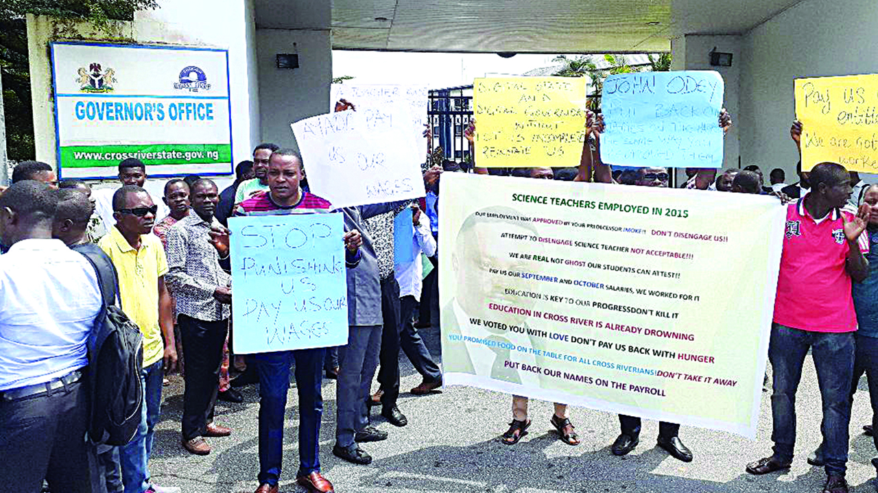 Mr. Henry Abuh, who spoke on behalf of the protesting teachers, who were mainly science teachers, said they were employed in 2016 by Governor Ben Ayade and had gone through the processes of employment, only for the Special Adviser to the Governor on Payroll, Mr. John Odey, to remove their names from the payroll.