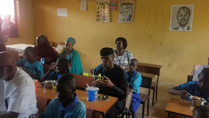 The vice president, who had lunch with the pupils, added that the meal would improve the children’s health, boost farming in the country and create job opportunities for some people.