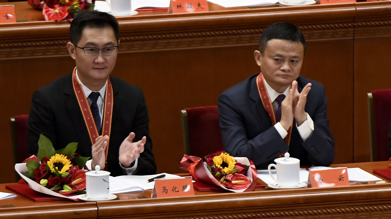 He was joined onstage on Tuesday by fellow billionaires Pony Ma, who founded internet behemoth Tencent, and the chief executive of search engine Baidu, Robin Li, though neither have been identified as card-carrying party members.
