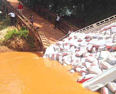 he bridge hanging across Ebonyi River collapsed over the weekend following an attempt by a truck loaded with 900 bags of cement to cross.