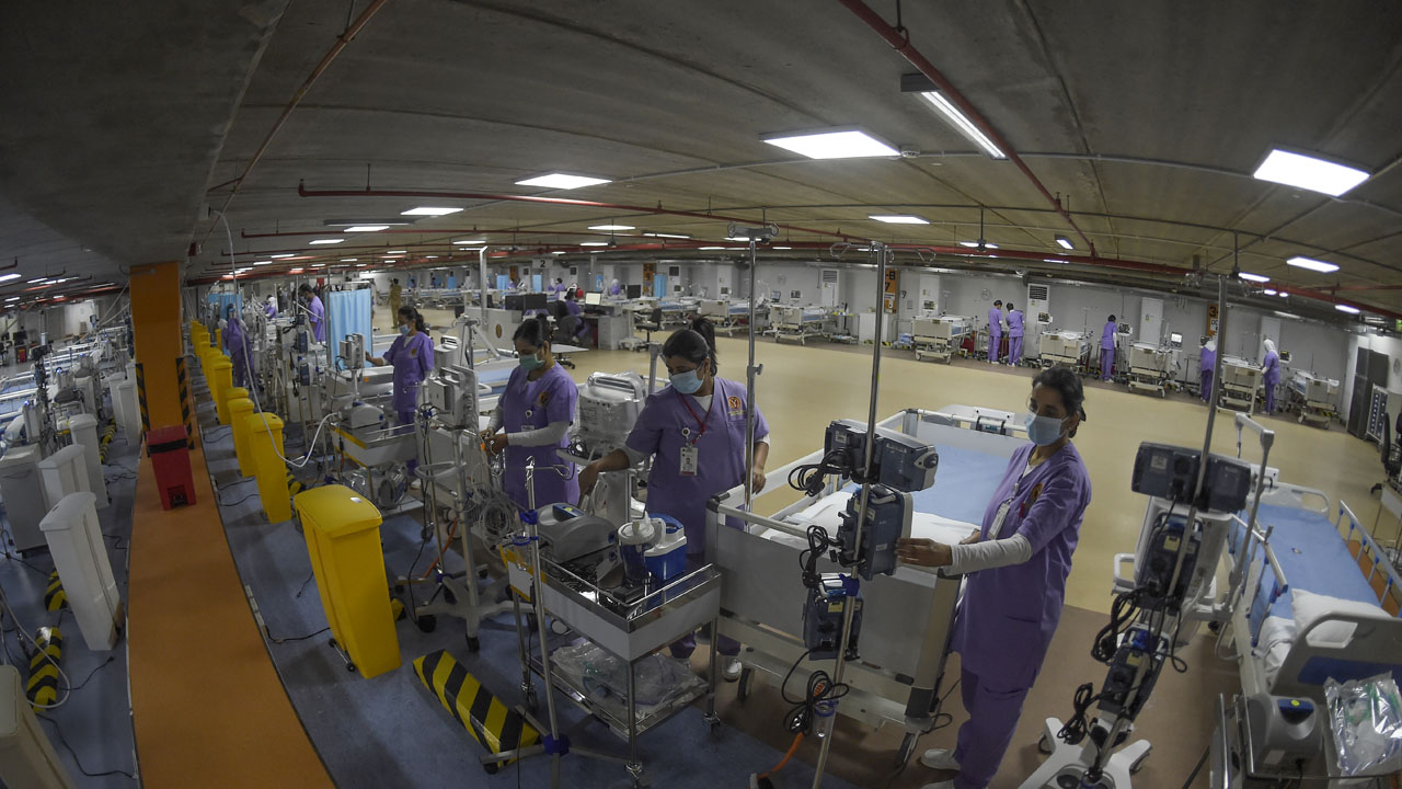 The beds were lined up in three rows as medical staff tested respiratory equipment on Tuesday.