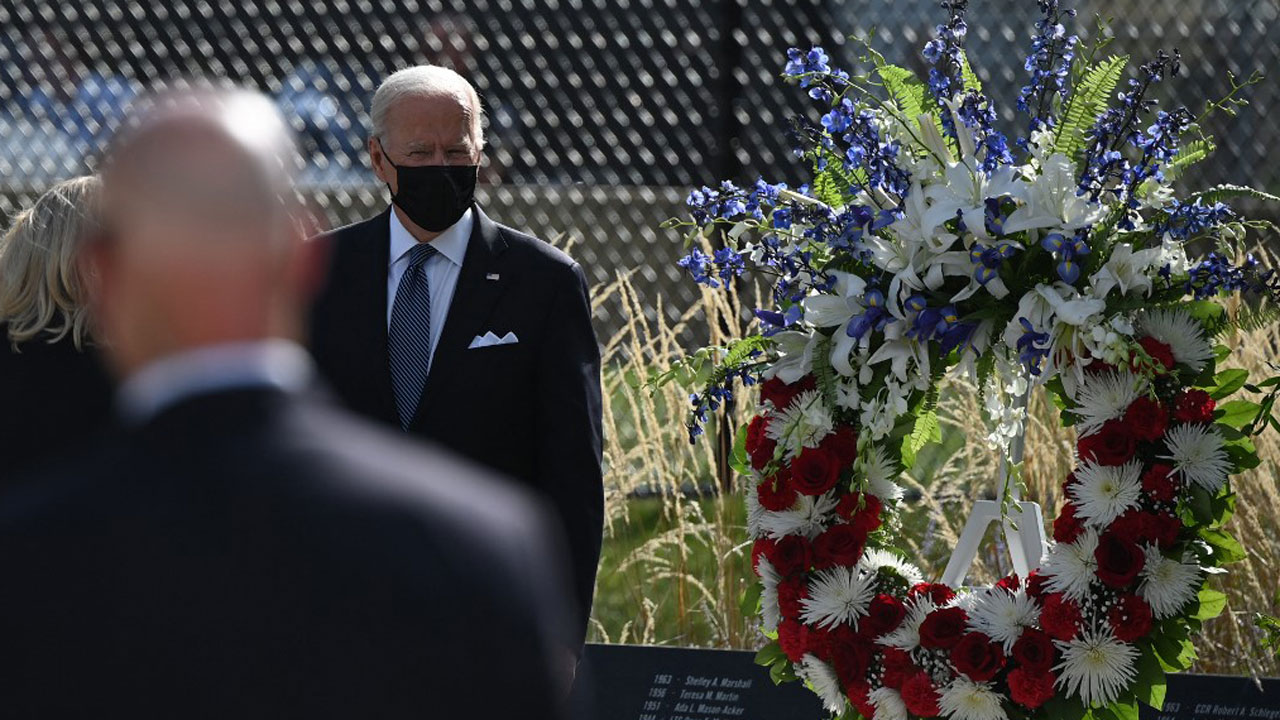 Biden had begun his day Saturday in Manhattan, attending a televised ceremony marking the September 11 attacks there.