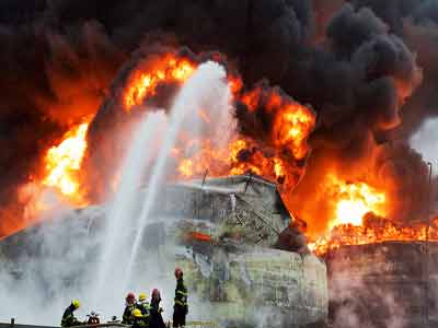 However up to 1,000 firefighters were still struggling to extinguish blazes at the site, with smoke billowing from three areas, adding to uncertainty over whether more chemicals may be leaking.