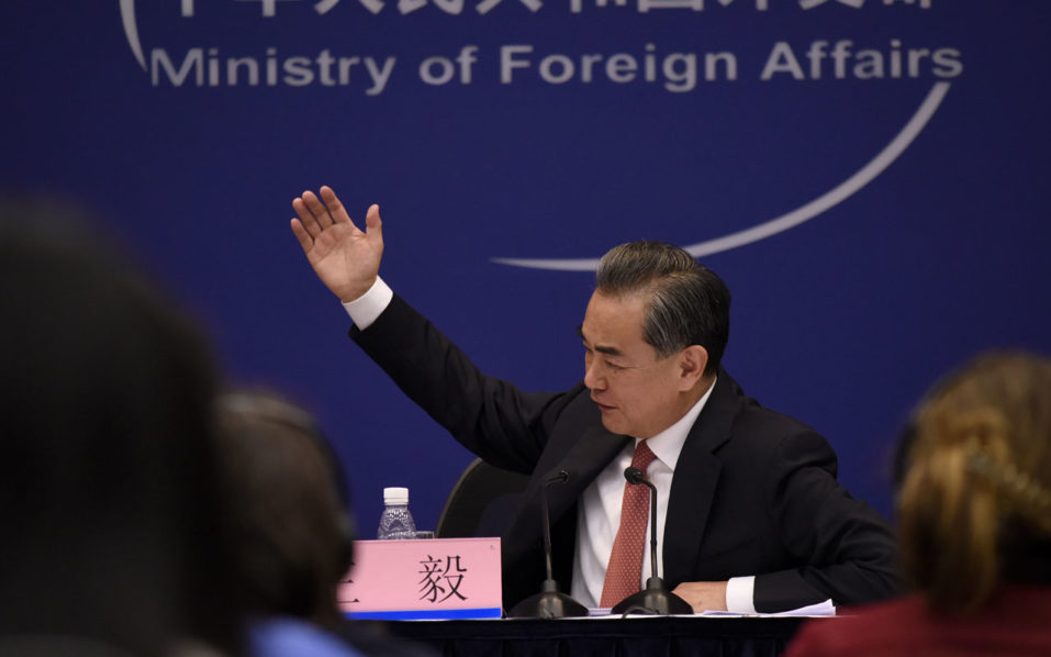 Chinese Foreign Minister Wang Yi answers a question during a press conference in Beijing on August 30, 2017. China is working with other members of the United Nations Security Council on a response to North Korea's missile launch over Japan, the Chinese foreign minister said on August 30. / AFP PHOTO / WANG ZHAO