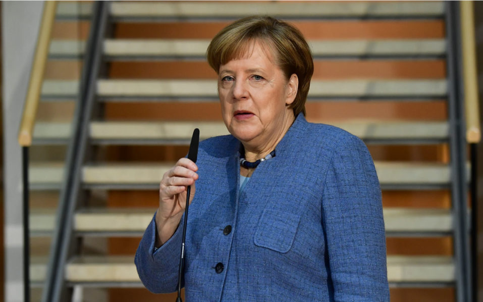 German Chancellor Angela Merkel gives a statement as she arives at the Social Democrats Party (SPD) headquarters on February 4, 2018 in Berlin, as German Conservatives (CDU/CSU) and Social Democrats hope to complete negotiations to form a government German Chancellor Angela Merkel’s conservatives have knotty issues still to clear up with their historic centre-left rivals in February 4, 2018 coalition talks, but a deal could finally be in sight by the evening, more than four months after the general elections. / AFP PHOTO / Tobias SCHWARZ