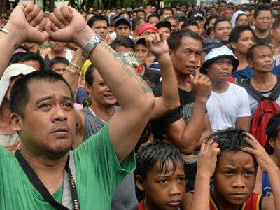 Rivera was among thousands of mostly poor people who had gathered in the main public square of Manila’s Marikina suburb to watch the battle on a giant screen mounted on the back of a flat-bed truck.