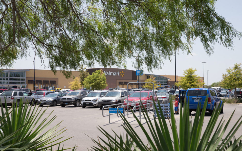 The parking lot of a Walmart, where a truck trailer was found with 8 deceased immigrants early in the morning, is seen on July 23, 2017 in San Antonio, Texas. Eight people were found dead inside a truck in a Walmart parking lot in San Antonio, Texas in what police said appeared to be “human trafficking crime.” Another 28 people were injured — 20 of them severely — and were being treated at seven local hospitals, San Antonio Police Chief William McManus and Fire Chief Charles Hood told reporters. / AFP PHOTO / SUZANNE CORDEIRO
