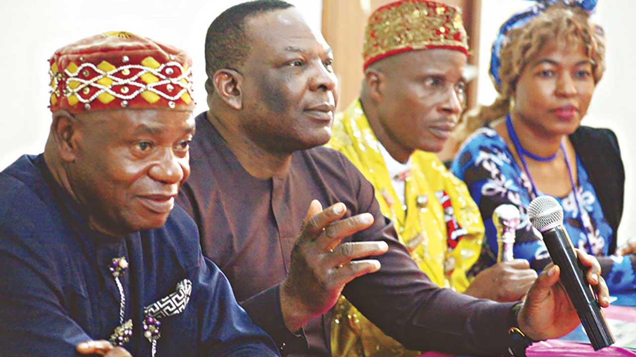 Chairman, Deebon Council of Chief and Elders, Bodo Community, Chief Saint Emma Pii (left); Executive Director, Environmental Rights Action/ Friends of the Earth Nigeria (ERA/FoEN), Dr. Godwin Uyi Ojo; Gokana Divisional Council of Traditional Rulers, Ogoniland Rivers State, Chief Eric Dooh, and Executive Director, Keen and Care Initiative (KCT) Nigeria, Josephine Alabi, at a meeting on Ogoni cleanup in Abuja …yesterday.