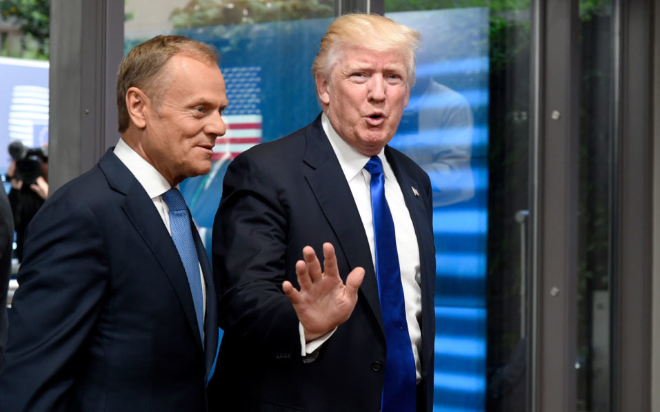 As they sat for the talks, Juncker and Tusk tried to make light of the EU’s complicated institutional structure to a US president that has been highly critical of the bloc.