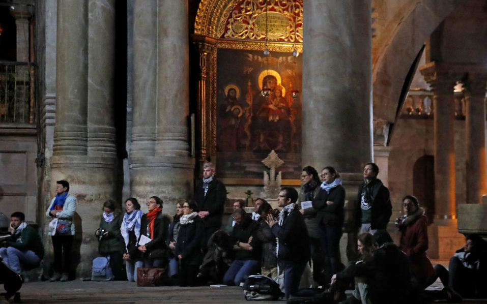 “We prayed in front of the doors every day since Sunday,” said Francois-Roch Ferlet, a 29-year-old visiting with a group of 50 people from France, standing near the ornate shrine encasing the traditional site of Jesus’s tomb inside the church.
