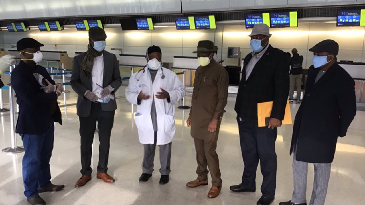 Consul General of Nigeria and His team At the airport in New Jersey to oversee the evacuation process of Nigerians living in the US. PHOTO: Twitter