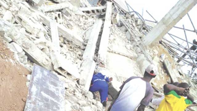 It was gathered that a section of the building, which is still under construction collapsed on a building beside it.