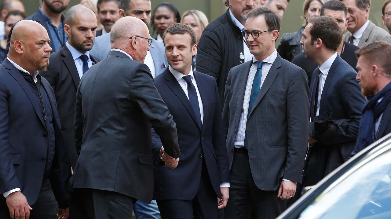 The 39-year-old, who beat far-right candidate Marine Le Pen in a second round vote last week, was received “triumphantly” according to tweets by those attending the meeting.