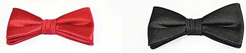 • Silk red ready tied bow tie and 100 per cent silk black bow tie.