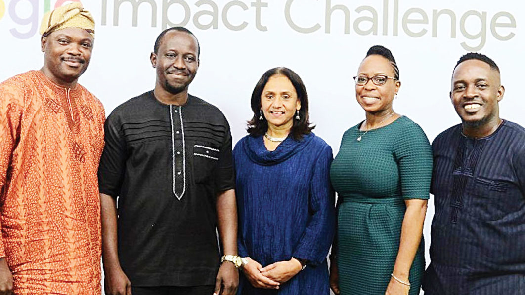 L – R: Oluseyi Oyebisi, philanthropist and Executive Director of Nigeria Network of NGOs; Ife Adebayo: SA to the Vice President on Innovation and Entrepreneurship; Parminder Vir OBE – Chief Executive Officer, Tony Elumelu Foundation; Affiong Osuchukwu, Google’s Nigeria marketing manager and MI Abaga, rapper and CEO of Chocolate City Music Group at the unveiling of Google Africa Impact Challenge held in Lagos